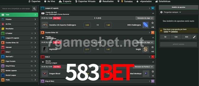 O 583Bet oferece uma grande seleção de opções de apostas em e-sports com probabilidades competitivas